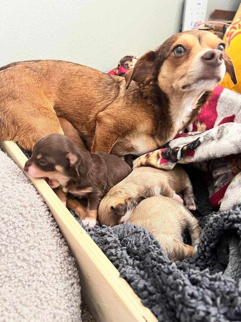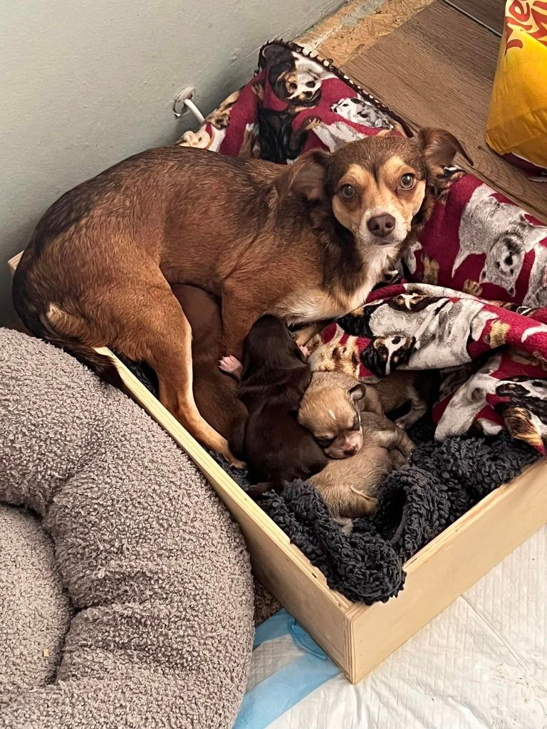 Taking in a mama dog and her puppies for fostering can be a rewarding experience, but it can also be challenging, especially if you’ve had a difficult experience with a previous foster. However, when Shelby, who runs Hank’s Legacy Foundation, contacted my mom and asked if my mom and I could foster the mama dog and her four puppies, we knew that we had to give them a chance. Shelby is one of the rescues I work with, and she has been a great help in finding homes for the animals I foster.
