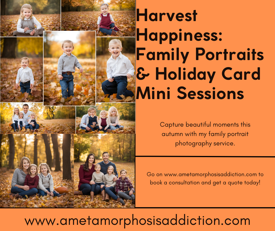 I’m thrilled to announce a variety of mini sessions at any pumpkin patch, perfect for those cozy, festive vibes. Whether you’re looking to create stunning holiday cards, capture family Autumn portraits, or enjoy a fun-filled day with my custom photobooth and portrait lounge services, I’ve got you covered! 📸 Plus, I’ve just launched e-gift cards—the perfect gift for your loved ones!
