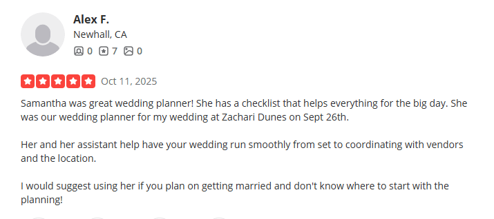I provide custom quotes based on your guest count, venue, planning needs, and budget — so you’re only paying for what actually helps you.